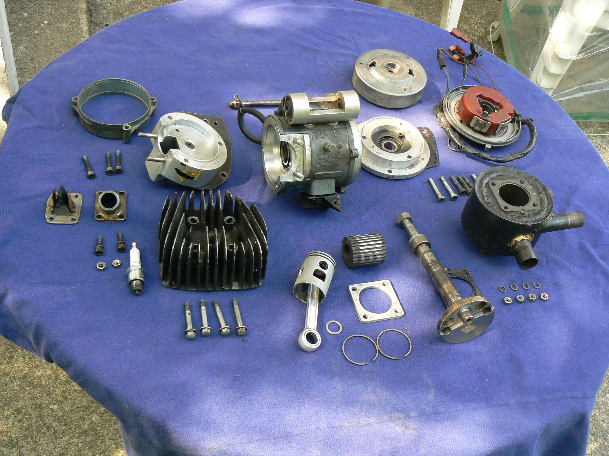 Ensemble des pièces du moteur démonté après le GPPS 2010