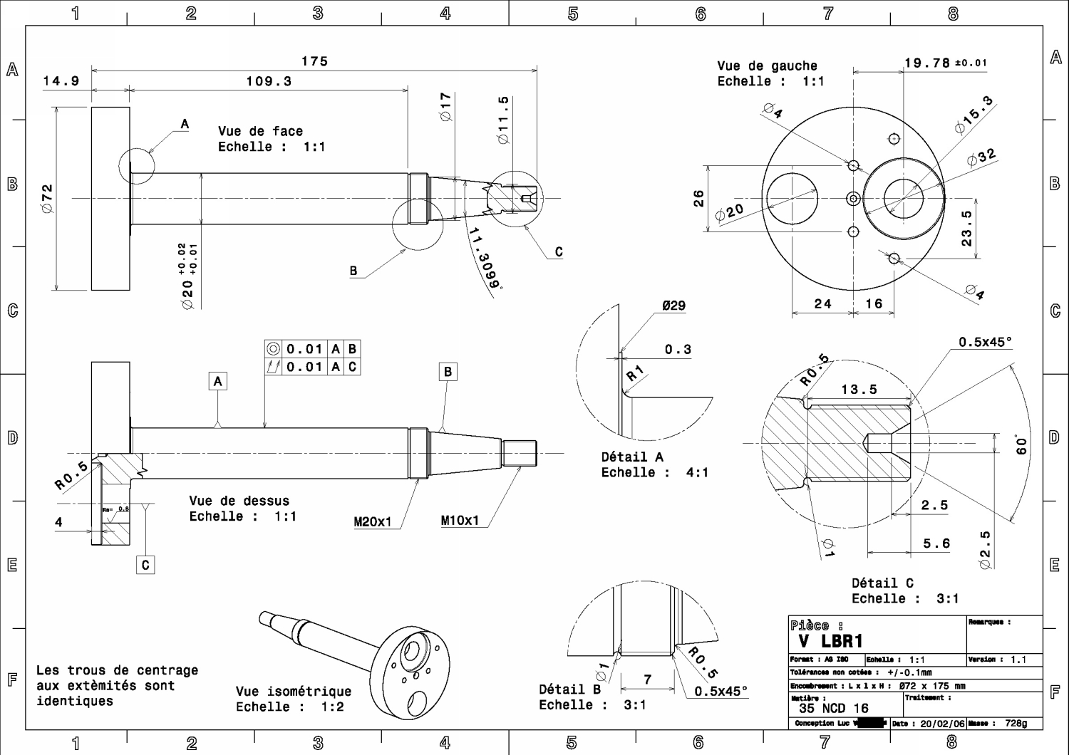 Vilo usiné dans un bout d'acier forgé ressemblant à un vilo de solex avec un arbe de 40mm et une soie de 100mm. Entièrement usiné au tour dans mon garage. Aucune cote compatible avec des cotes d'origne, vilo dessiné pour mon carter. Le serrage des roulements est ajusté à la toile entre 5 microns et 1 centième. Le maneton est repris au tour pour l'amener à la cote avec 5 1/100 de serrage.