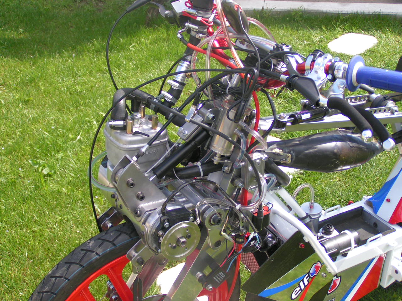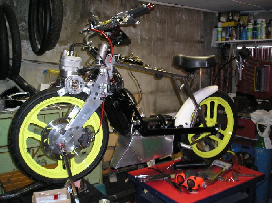 PARTIE MOTEUR: Bas moteur usiné, clapet 80 CR, keihin 26 ou Dellorto 19/21, PVL Analogique, cylindre base Derbi Bidalot ou Oméga, échappements maison, cartouche Ninja racing.