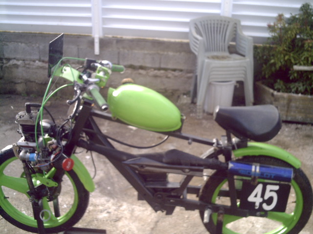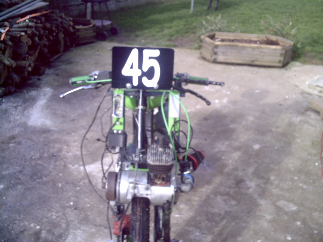 apres un passage en sp me voila en proto.un cylindre 3 transferts dont un raporté sur l'arriere(merci chicane)le cylindre est toujours a gauche.j'ai fais quelques courses en 2009 pour la mise au point,et le cadre a etait refait pendant l'hiver.le moteur va evoluer pendant la saison 2010.