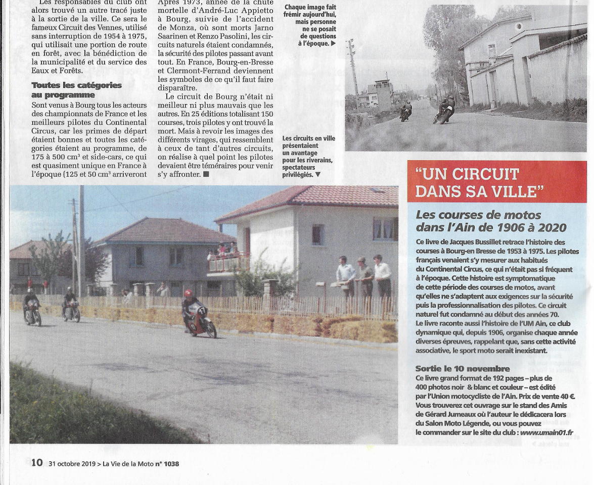 :salut: Il y avait aussi un article dans le magazine La Vie de la Moto 1038 du 31 octobre 2019. Plein phare > Les circuits d'antan, il faisait la promotion de l'ouvrage "Un circuit dans la ville" article_lvm_31102019_1.jpg article_lvm_31102019_2.jpg article_lvm_31102019_3.jpg A suivre