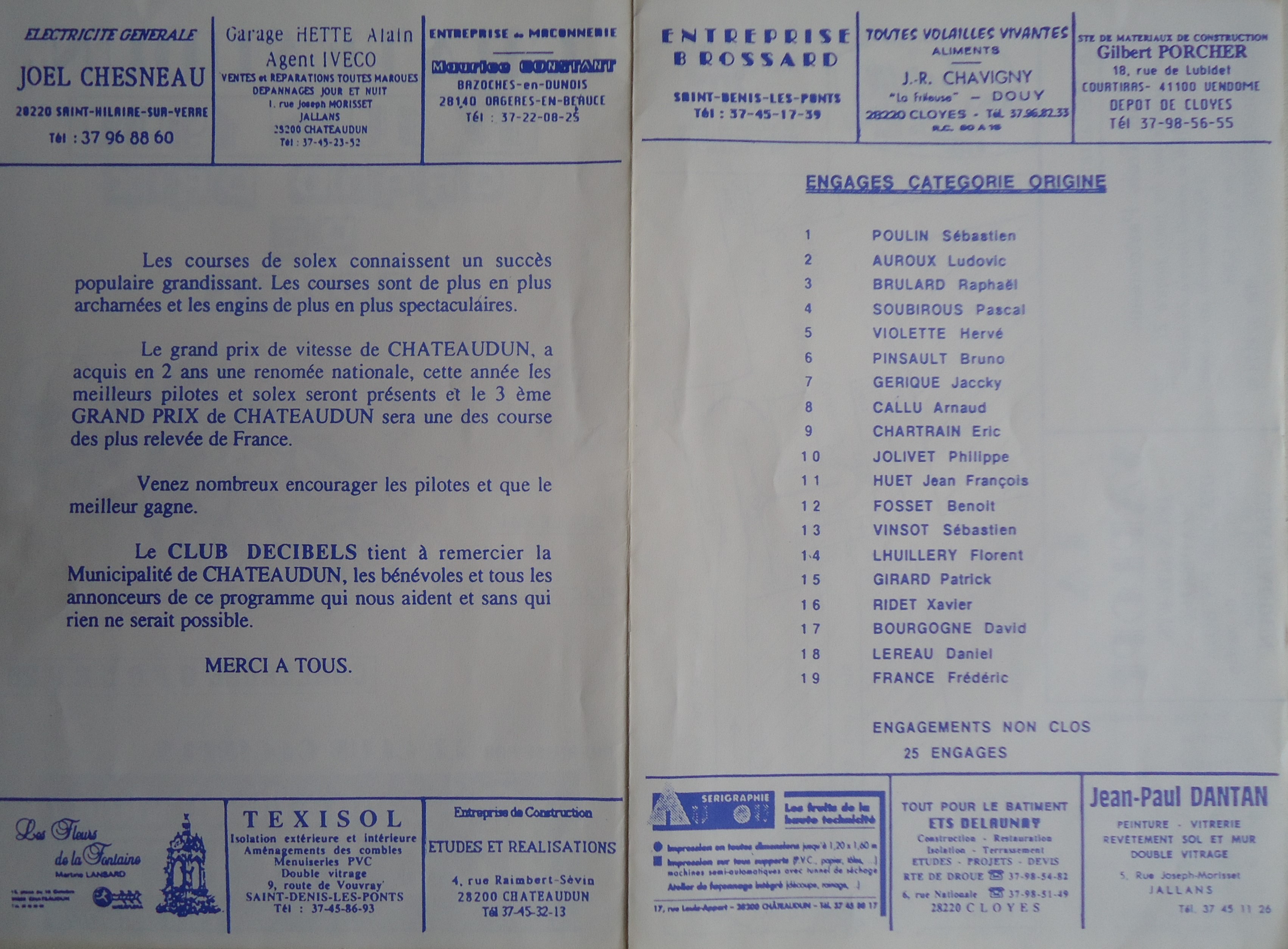 [b]Un aperçu du programme de la course de Châteaudun en 1990, sans compter les engagés sur place le jour même.
