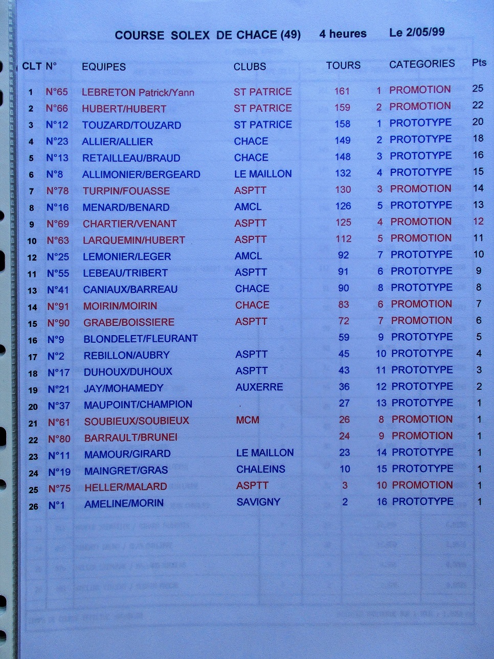 Au hasard des rangements dans les anciens classements UFOLEP