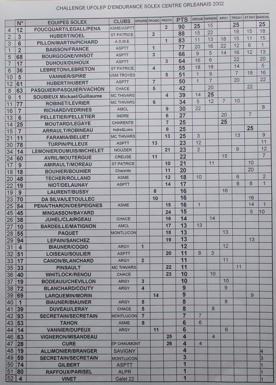 Le classement du Championnat du Centre 2002 en Endurance