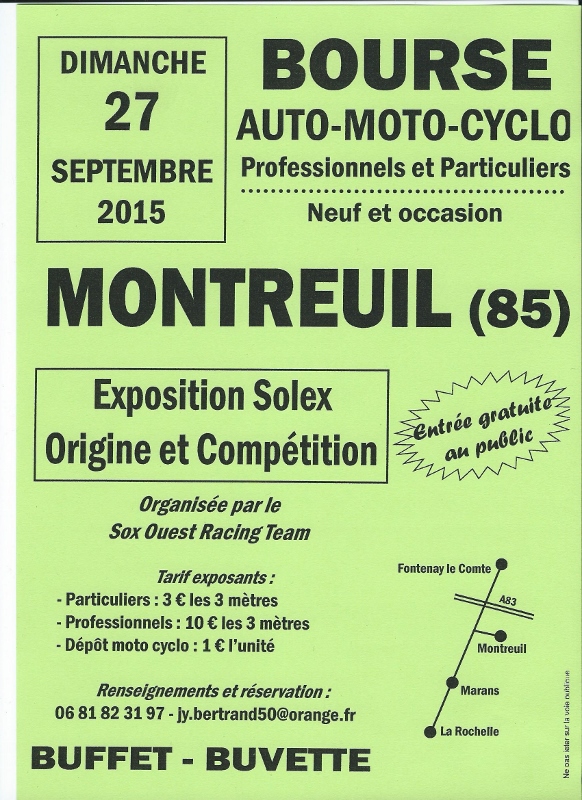 Le Sox Ouest Racing Team organise sa première bourse auto moto et cyclo à Montreuil en Vendée proche Fontenay le comte, le dimanche 27 septembre 2015.