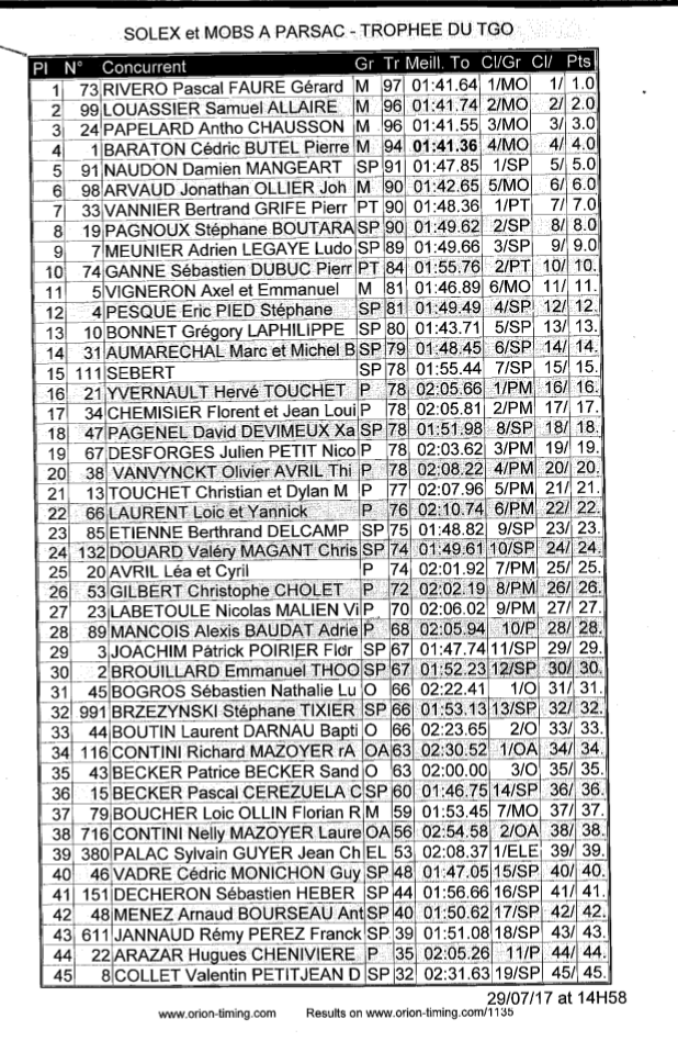 Maintenant que l'on a enfin un classement je vais pouvoir vous faire le classement du TGO.