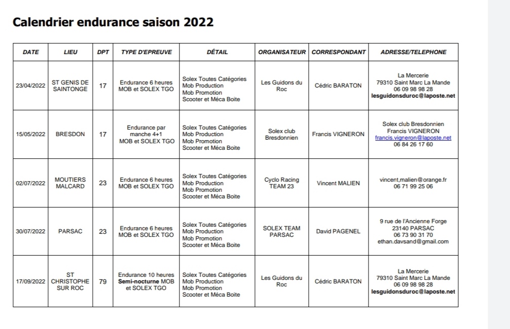 Voici le calendrier tgo solex et mobs 2022