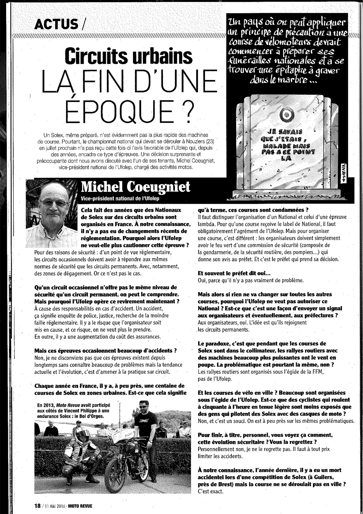 pas du risque de l'activité Solex mais de la solidarité entre les disciplines moto puisque les licences sont les mêmes.