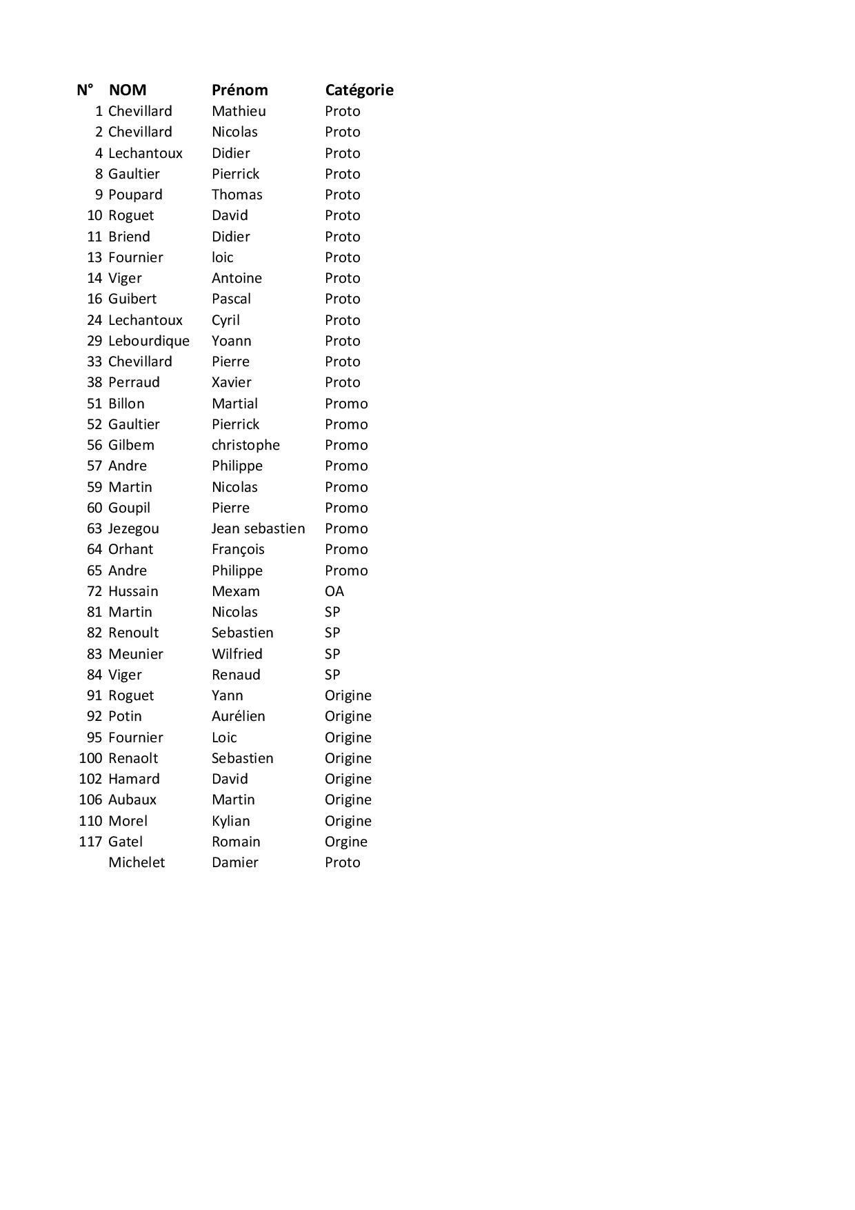 Je n'ai pas encore reçu la liste des engagés, je fais suivre dés que ça arrive.