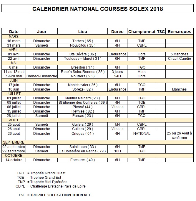 Voici les dates connues 2018