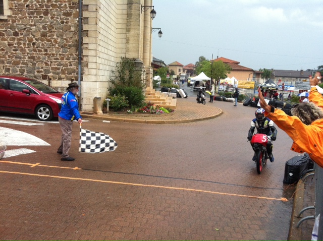 Je m'aligne sur le départ et remercie encore le papa du pilote-propriétaire promotion "Tigre Blanc" qui tient ma machine.
