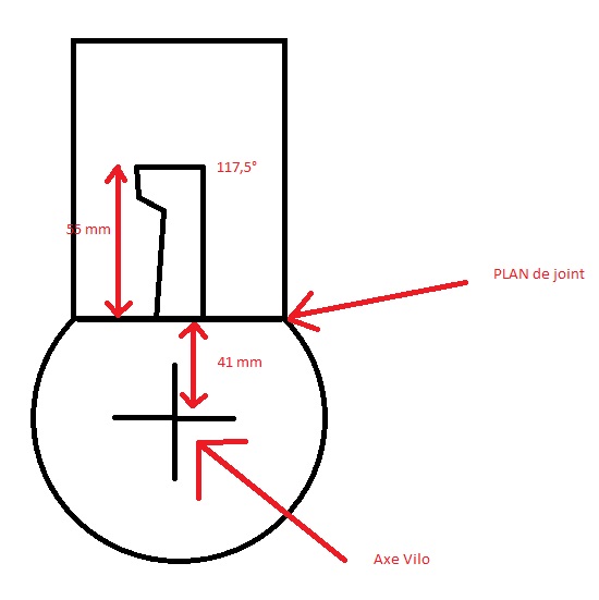 pour une cote de 55mm entre ton plan de joint de carter ( a condition qu'il fasse 41mm entre l'axe du vilo et ce dernier) et le haut de tes latéraux ça te donne 117.5 en diagramme