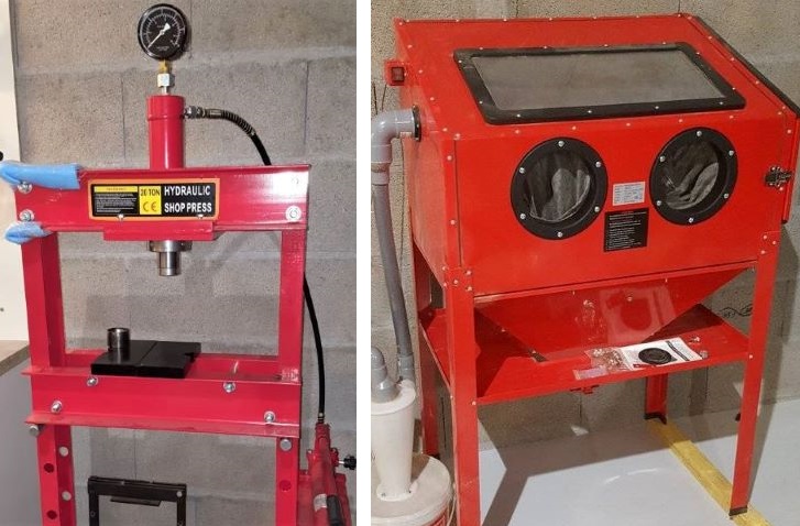 -Presse : pour sortir les roulements, les pistons bloqués ou n'importe quoi d'autre (tordre, redresser, écrouir, emboutir... 20T, ça fait pas mal de choses)
