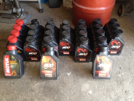 Vends bidons d'huile (1L) de motul 800 off road ou road racing.