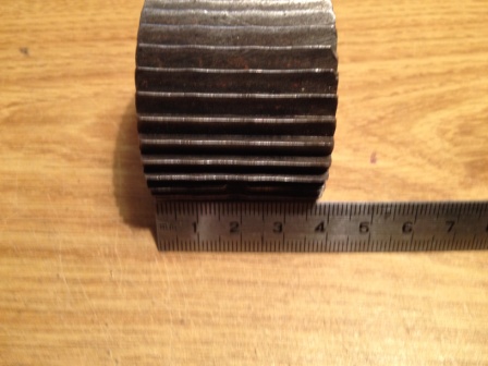 galet 2 : Ø46, Ø18 intérieur et largeur 38 mm avec rainure de clavette (6mm) et vis de pression M6 et 32 dents (quasi neuf)