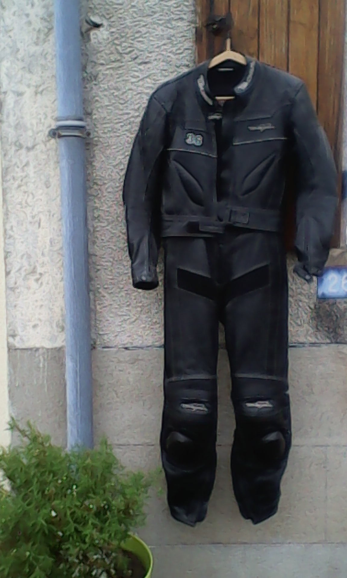:salut: je vend une combi cuir noir 2 parties avec renfort coudes et genoux et dorsale en mousse en très bon état non râpé et soirées état neuf prix 100 euros hors frais de port possibilité livraison nouziers ou Chaumont