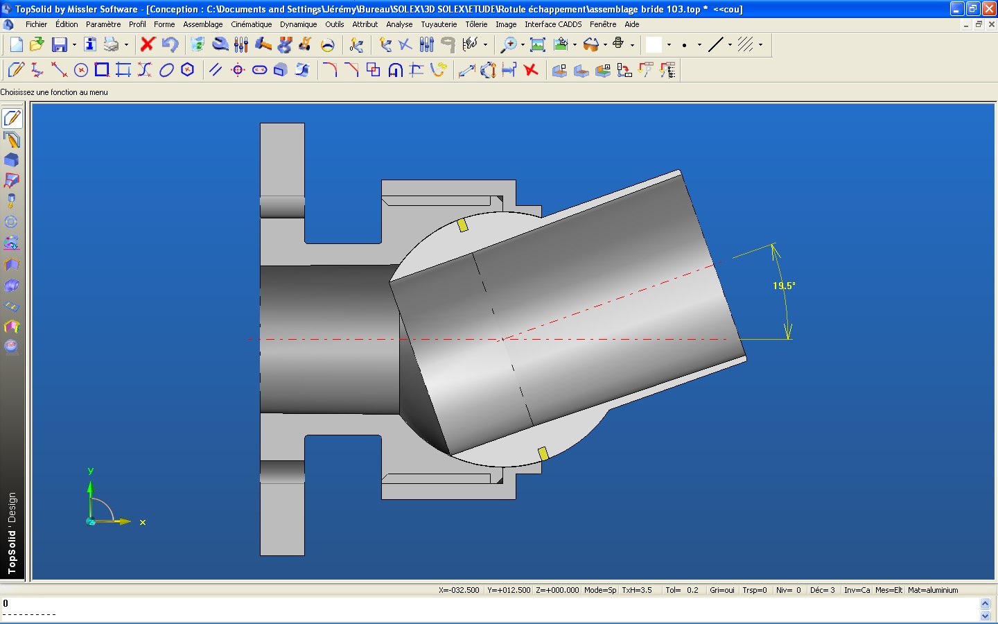 - j'ai intégré une conicité progressive dans l'ensemble, la partie fixé au cylindre à une conicité de 1° et la partie emboité au pot à une conicité de 2°