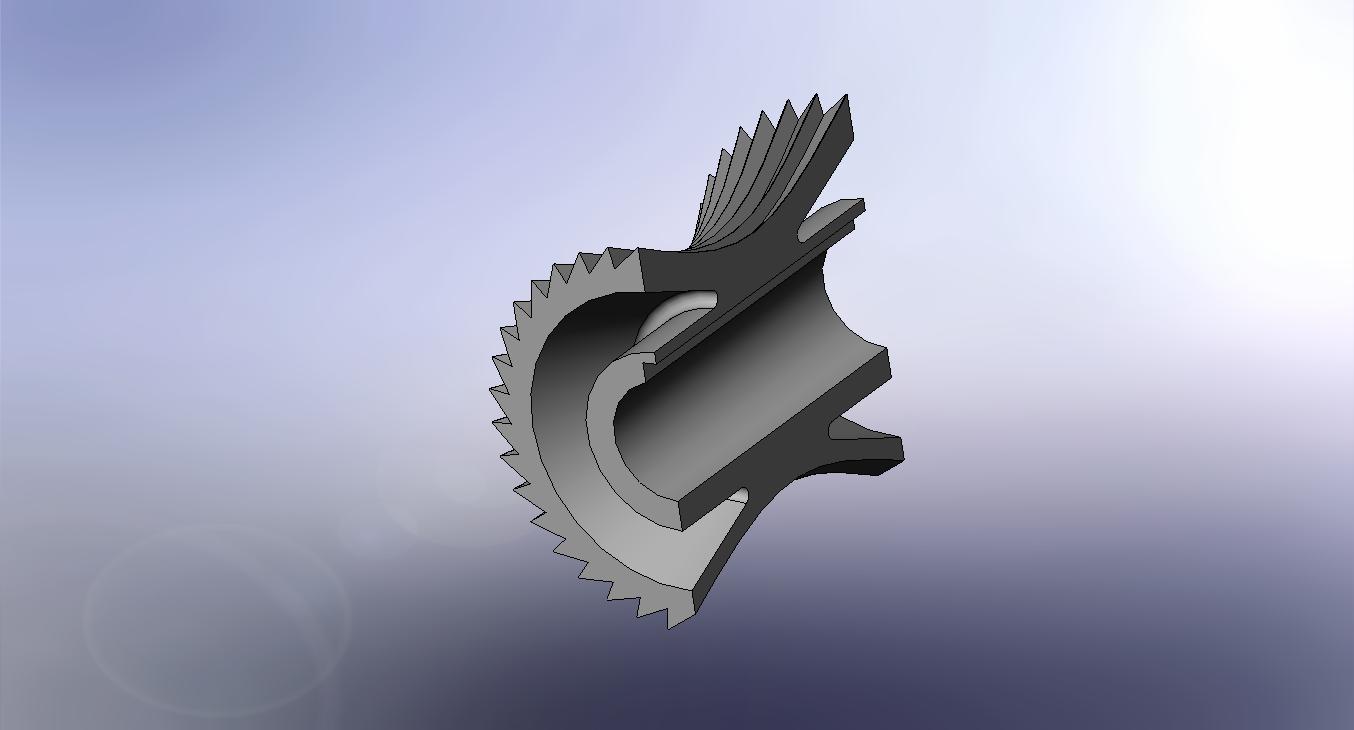 - Le profil du galet doit être bien étudié pour des raisons de sécurité, il ne suffit pas de reproduire la forme du pneu car par écrasement le pneu se déformera et les extrémités de la denture seront comme des poignards sur la bande de roulement et pourraient provoquer des crevaisons voir un éclatement du pneu. C'est pourquoi la forme doit "s'écarter" de la bande de roulement quand on s'écarte du centre. C'est aussi pour ça que j'envisage faire un galet plus large pour que ces pointes se retrouve hors du pneus (ce qui n'arrange pas les problèmes de masse et de gabarit)
