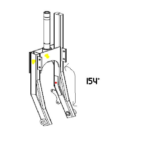 coté renforts sur ma fourche, la pièce en rouge recouvre l'intégralité de l'intérieur de la fourche jusqu'au T; la pièce en jaune est doublée par 2 pièces en forme de U qui viennent se coiffer sur les tubes de chaque coté, soudées au brox pour éviter les casses, et sur lesquels viennent les supports moteur