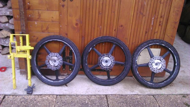 deux jantes sont identiques, la troisieme servait de jante arriere mais peut etre utilisé pour l'avant
