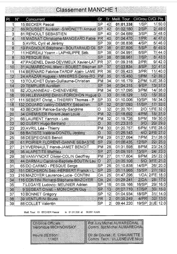 J ai pas trop compris le mode de calcul du classement car on a le même nombre de points que le 3 ème et on fait 4 ème mais pas grave on a pris notre pied.