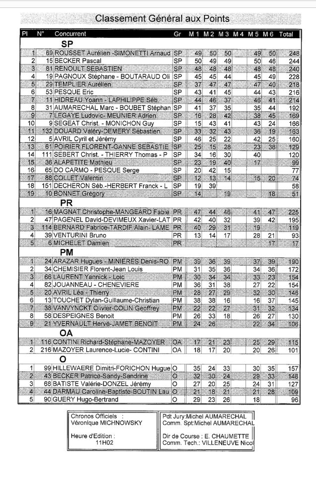 J ai pas trop compris le mode de calcul du classement car on a le même nombre de points que le 3 ème et on fait 4 ème mais pas grave on a pris notre pied.
