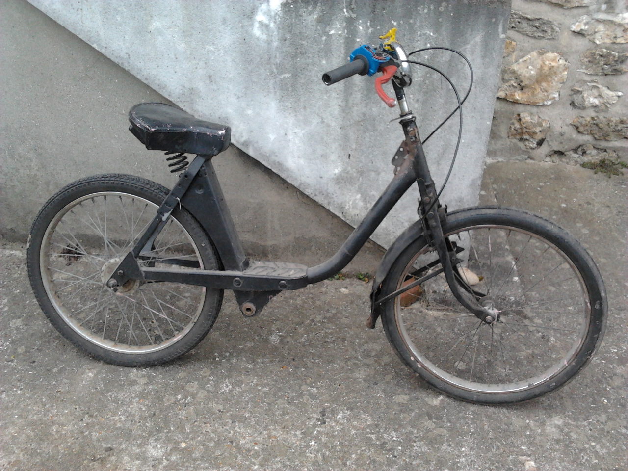 Pour faire de la place je mets en vente un cadre Solex (rond) modifié en 1987 pour faire un proto/promo?... sur roues :